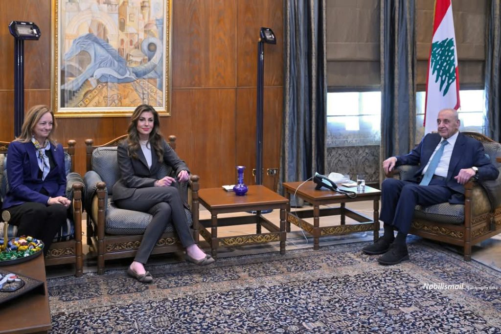 ما ان جلست الموفدة الأميركية مورغان أورتاغوس على كرسي امام الرئيس بري وبرفقة السفيرة الأميركية ليزا جونسون والوفد المرافق، ثوان قليلة حتى سمح لنا بالدخول لإلتقاط الصور.