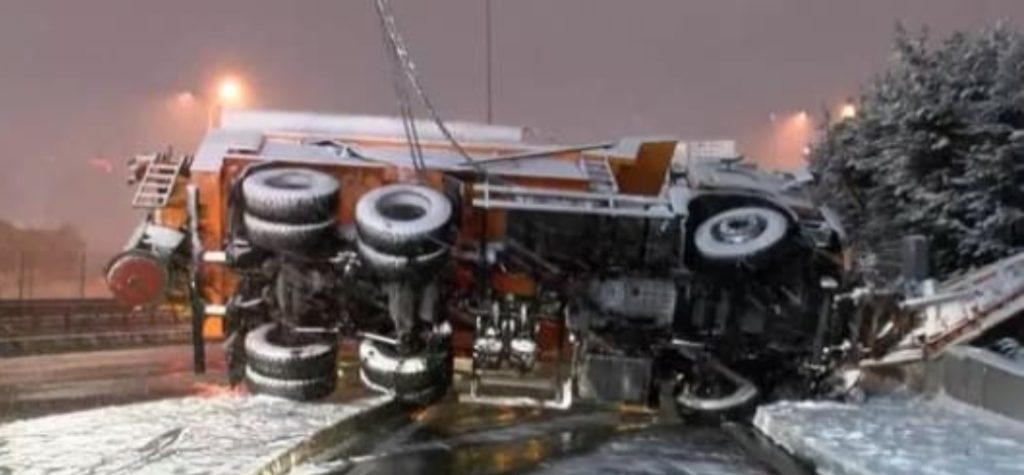بالصّور: انقلاب شاحنة لإزالة الثلوج