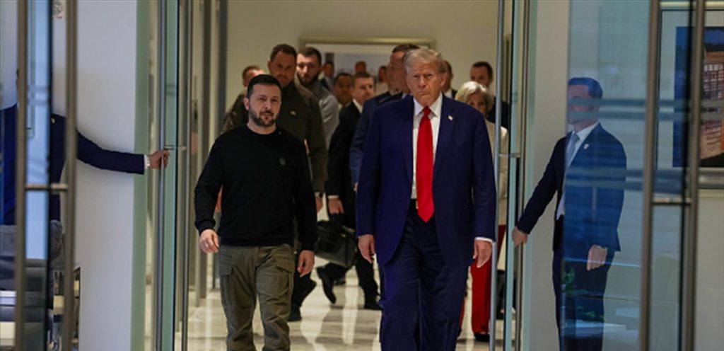 فخلال استقبال ترامب ضيفه، بادره فور خروجه من السيارة التي أقلته، قائلا بلهجة ساخرة إلى حد ما: “انظروا إليه في كامل أناقته.. ثياب جميلة”، في إشارة إلى ارتداء زيلينسكي ثيابا غير رسمية، علما أنه ومنذ اندلاع الحرب في بلاده، دأب على الظهور بثياب ذات طابع عسكري أكثر.
