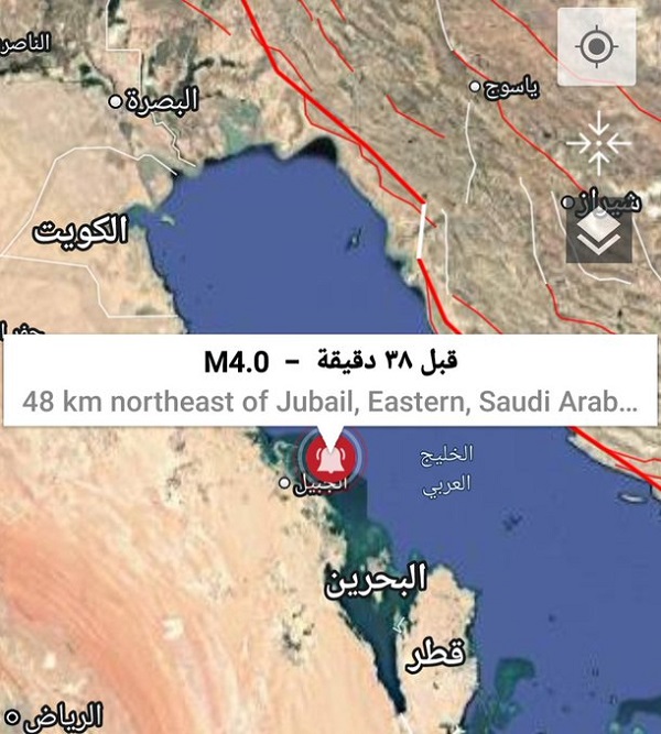 هزة بحرية قبل قليل بقوة 4.4 ريختر تضرب الخليج العربي قبالة سواحل المنطقة الشرقية في السعودية