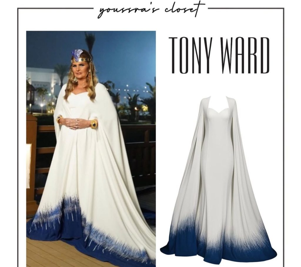 يسرا تتألق بإطلالة ملكية من توقيع طوني ورد