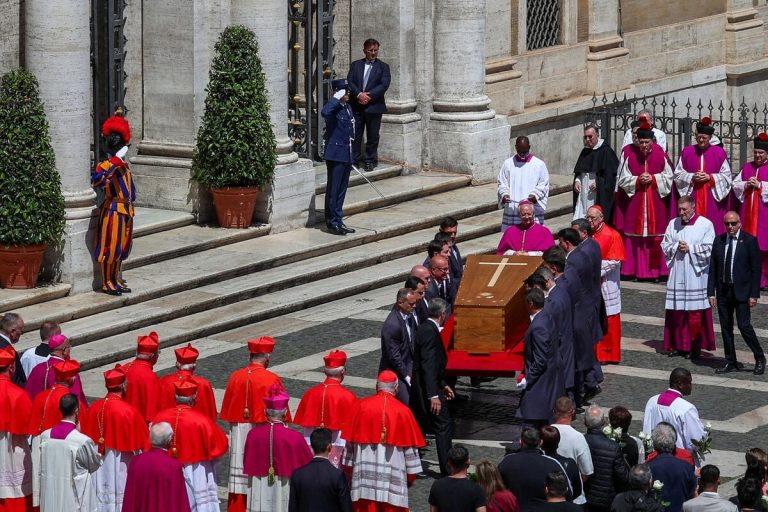 وبحسب بيان الفاتيكان، بدأت مراسم الدفن في تمام الساعة الواحدة ظهرًا بالتوقيت المحلي (السابعة صباحًا بتوقيت واشنطن)، حيث ترأسها الكاردينال كيفن فاريل، “الكاميرلينغو” المكلّف بترتيبات الجنازة وفق ما تقتضيه التقاليد الكنسية، كما سيتولى لاحقًا تنظيم الاجتماع السري لمجمع الكرادلة لاختيار البابا الجديد.