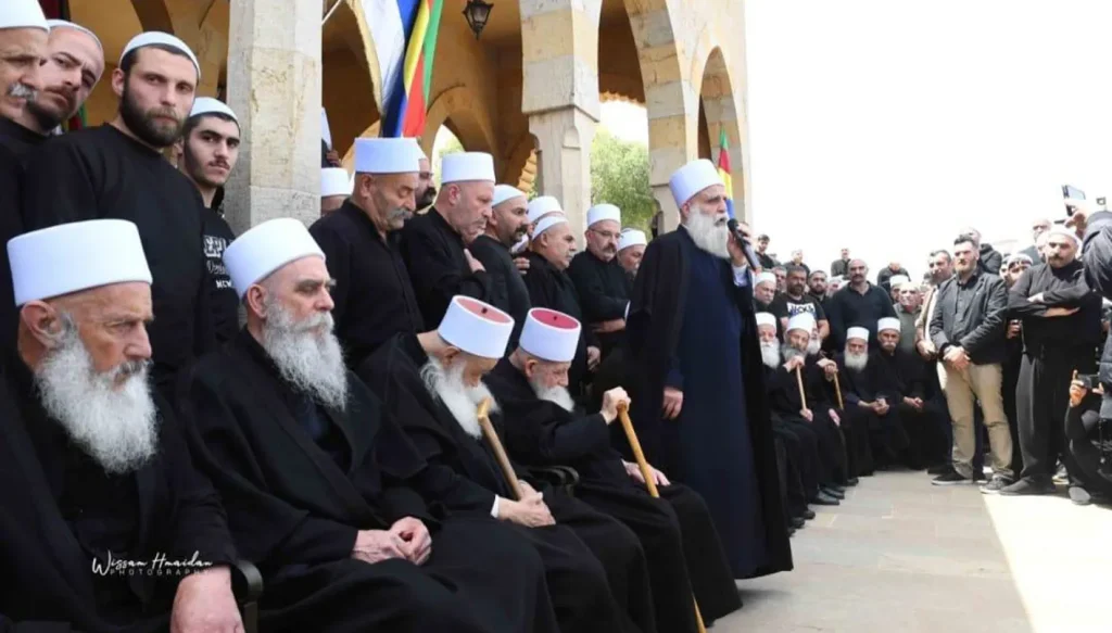أضاف أبي المنى: “ما يحصل أكان في السويداء ام كان في الغوطة او في الاقليم يعنينا في الصميم لأننا أبناء طائفة إسلامية موحّدة واحدة أكانت في لبنان ام في سوريا ام في الداخل الفلسطيني في الجليل في الكرمل في الجولان كلهم أهلنا وكلهم احباء وكلهم يشدون على أيدي بعضهم البعض، الهدف واحد والغاية واحدة، هو صون هذه الطائفة العربية الإسلامية الموحّدة”.