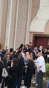 وبدت سماحة في حالة من الانهيار لحظة وصول الجثمان لمسجد الشرطة بالشيخ زايد، وسط حضور عدد من النجوم والشخصيات العامة منهم، المنتج محمد السعدي عضو مجلس إدارة الشركة المتحدة للخدمات الإعلامية، والفنانة إلهام شاهين، والإعلامية لميس الحديدي، والدكتور أشرف زكي نقيب المهن التمثيلية، والمخرج محمد سامي، الكاتب والسيناريست مدحت العدل.
