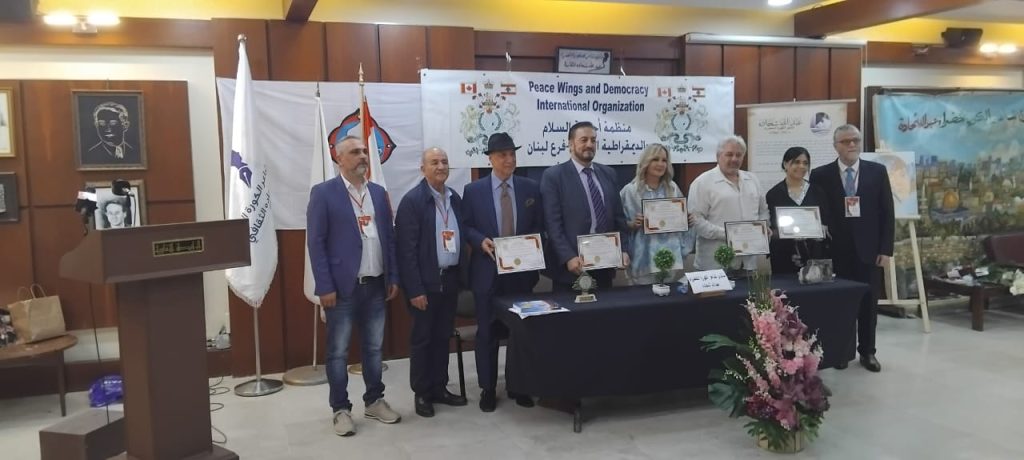 منظمة أجنحة السلام والديمقراطية الدولية (CANADA) فرع لبنان وذلك بحضور رئيس المنظمة في لبنان ايهاب زين الدين والسفير علاء علاء الدين والسفير جوزيف ابو خليل. تم التكريم في جناح منتدى شاعر الكورة الخضراء عبد الله شحادة الثقافي ضمن فعاليات معرض الكتاب ال 51 في مبنى الرابطة الثقافية. قدم المكرمين سعادة السفير علاء علاء الدين. البداية النشيد الوطني اللبناني – نشيد طرابلس. وذلك بحضور جمع غفير من مثقفي مدينة طرابلس الفيحاء.