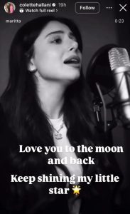 وكتبت تعليقاً على فيديو خاص بابنتها عبر خاصية القصص المصورة في حسابها الرسمي على “إنستغرام”، معلقةً بالإنكليزية: “أحبك بقدر المسافة إلى القمر ذهاباً وإياباً”.