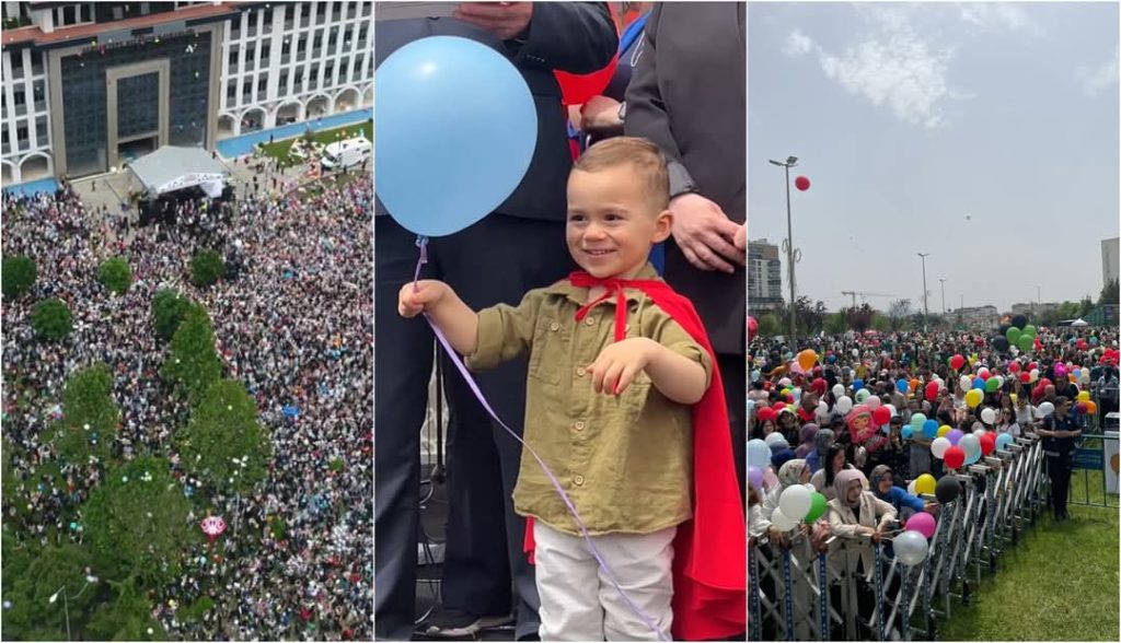 مواطن تركي، طفله الوحيد كان يعالج من مرض السرطان، وطال العلاج، حتى من الله عليه بالشفاء التام، كتب والده دعوة خجولة على مواقع التواصل : ابني انتصر على السرطان هل ستأتي غدا أمام البلدية وتطلق بالونا لتسعده لأنه ليس له أقرباء في المدينة، في اليوم التالي كان هذا المشهد أمام بلدية “سنجق تبه” حيث يقيم، حتى اضطرت الشرطة للحضور لتنظيم الأعداد الكبيرة !