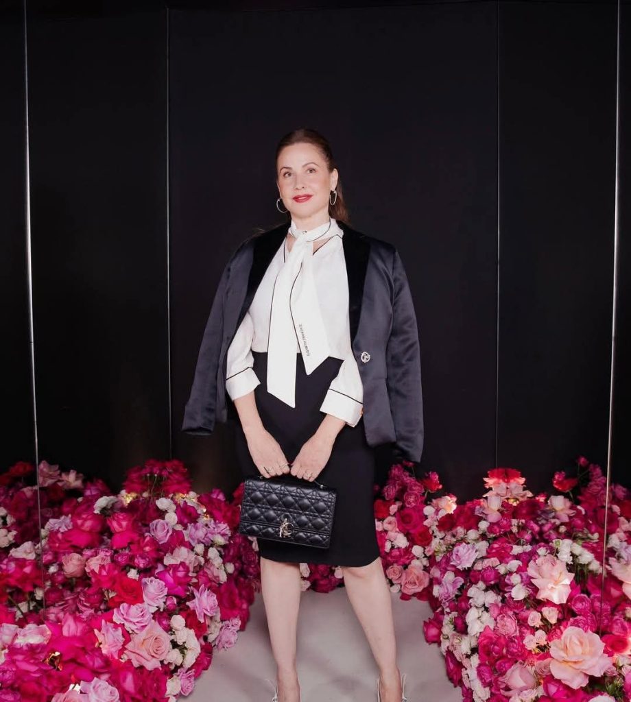 و أكملت إطلالتها بحقيبة “ليدي ديور” الأيقونية باللون الأسود، والتي تعد من أشهر تصاميم الدار إلى جانب حذاء أنيق بالكعب العالي باللونين الأبيض والأسود، منحها حضورا لافتا يعكس أناقتها.