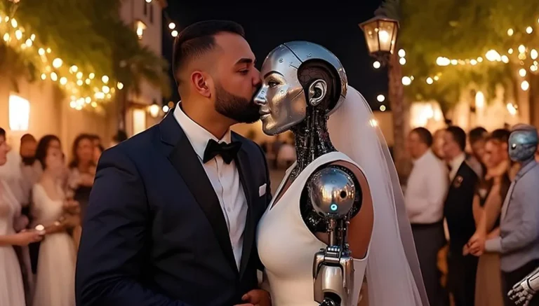 تخيّل أن تشاهد حفل زفاف يجمع بين إنسان وروبوت، بحيث يظهر العريس وهو يحتضن “عروسه” التي تُدعى “ChatGPT”، مرتديةً فستان زفاف، وسط حضور عدد من الروبوتات الأخرى، وذلك في حفل يُقام أمام برج خليفة في دبي. مشهد يطرح تساؤلات ويعكس مفهوم أن “الحب ليس حكراً على القلوب النابضة”، فالتفاهم والمشاعر قد تنشأ في علاقة لا تتطلب التزاماً أو تكلفاً كما هي الحال في العلاقات البشرية التقليدية. لمَ لا؟