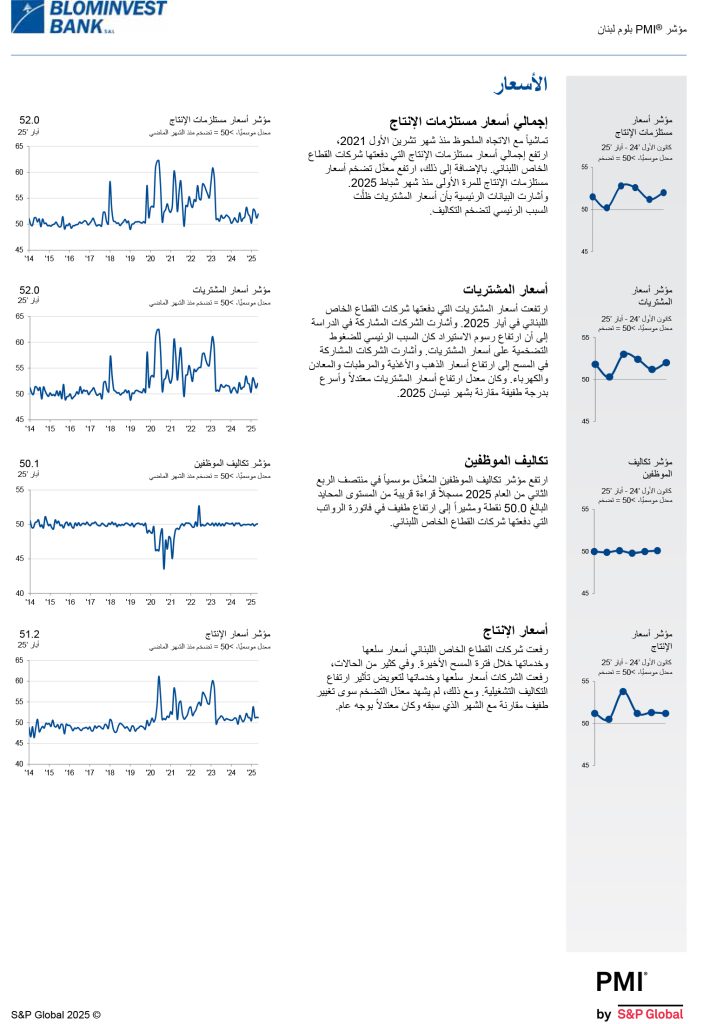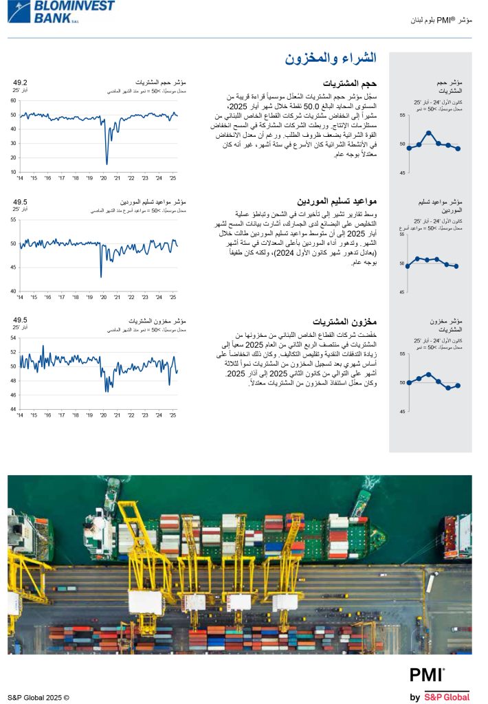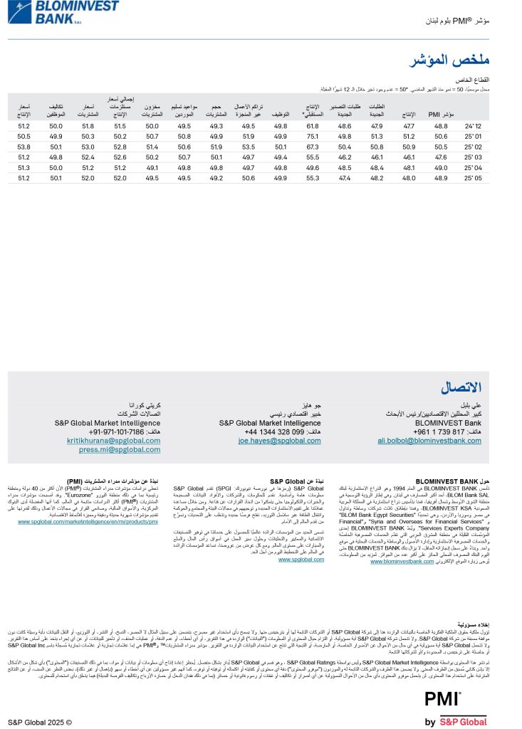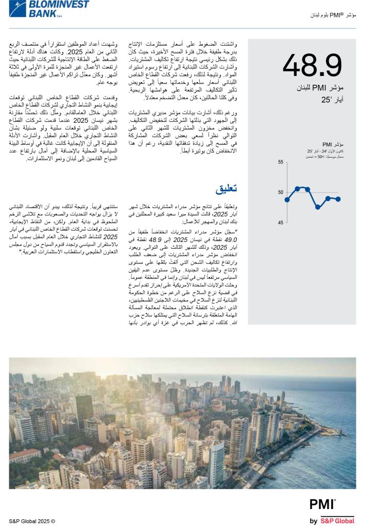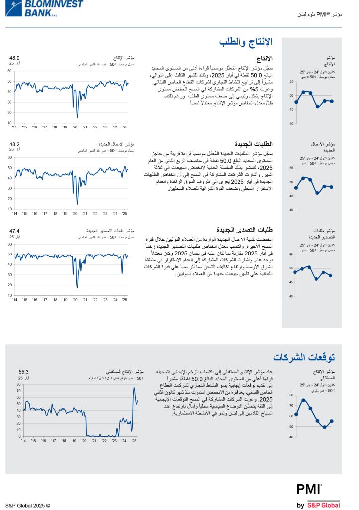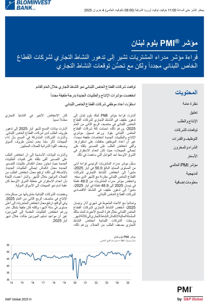 شاركها فيسبوك تويتر لينكدإن تيلقرام واتساب قراءة مؤشر مدراء المشتريات تشير إلى تدهور النشاط التجاري لشركات القطاع الخاص اللبناني مجدداً ولكن مع تحسُّن توقعات النشاط التجاري