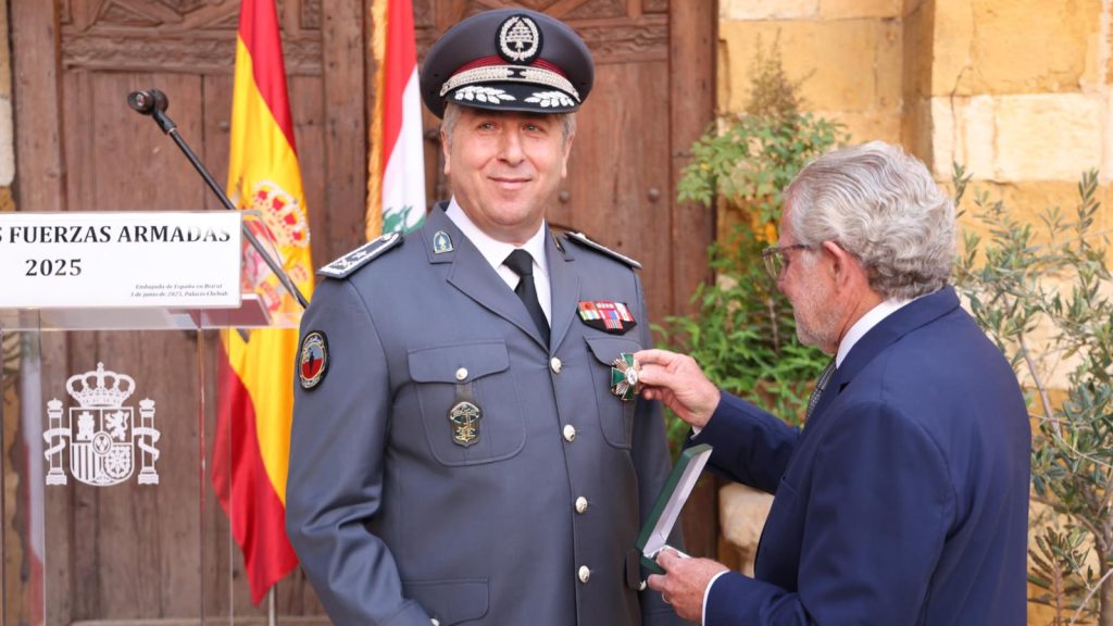 خلال حفلٍ أقامته السفارة الإسبانية في لبنان، بمناسبة “يوم القوات المسلحة الإسبانية”، يوم أمس 3-6-2025 في قصر شهاب – الحدث، كرّمت الحكومة الإسبانية قائد جهاز أمن السفارات والإدارات والمؤسسات العامة في قوى الأمن الداخلي، العميد الإداري موسى كرنيب، حيث منحته وسام الاستحقاق المدني من رتبة الصليب الفضي، أحد أرفع الأوسمة الإسبانية التي تُمنح لشخصيات قدّمت إسهامات بارزة في مجالات التعاون الأمني.