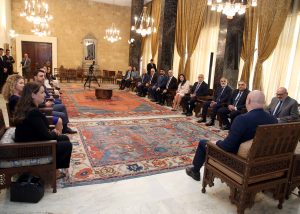 ثم انضمت السيدة الحدّاوي الى اللقاء الذي جمع رئيس الجمهورية بوفد مجلس التنفيذيين اللبنانيين برئاسة السيد ربيع الأمين الذي شكر الرئيس عون على رعايته وحضوره مؤتمر الحكومة الرقمية، وأشاد بالاهداف التي وضعها.