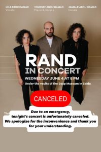 الراحل يوسف كان يستعد، اليوم، مع شقيقتيه جمال وليلي أبو حمد لإحياء حفل في متحف الصابون في صيدا. وبعد الخبر المفجع، أعلنت إدارة متحف الصابون – صيدا في مؤسسة عودة عن “إلغاء حفل فرقة “رند” المقرر مساء اليوم الأربعاء لظرف طارئ خارج عن إرادتها