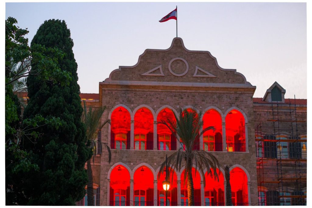 بالصورة – إضاءة السراي الحكومي باللون الأحمر