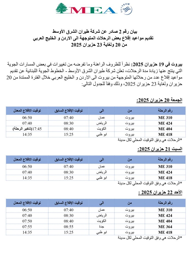 بيان رقم 2 صادر عن شركة طيران الشرق الأوسط yasmin ahmad 6 أشهر ago بيان رقم 2 صادر عن شركة طيران الشرق الأوسط