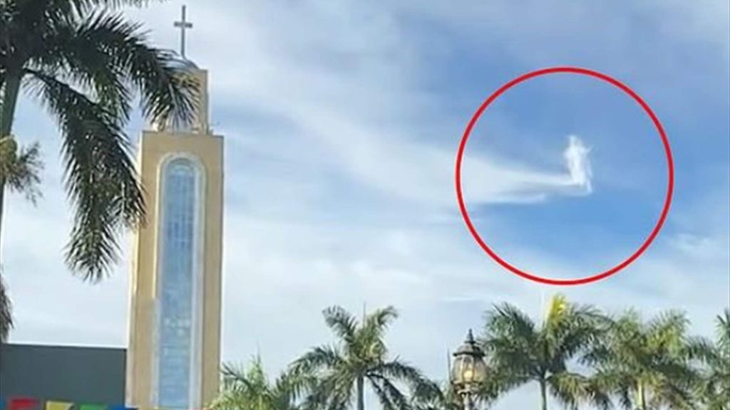 وفي التفاصيل، التُقط هذا المشهد المذهل بالقرب من كنيسة السيدة العذراء بينافرانسيا في الفلبين يوم 14 حزيران حيث تجمّع الناس للصلاة، عندما رصد العديد من أبناء الرعية سحابة على شكل شخص واقف.