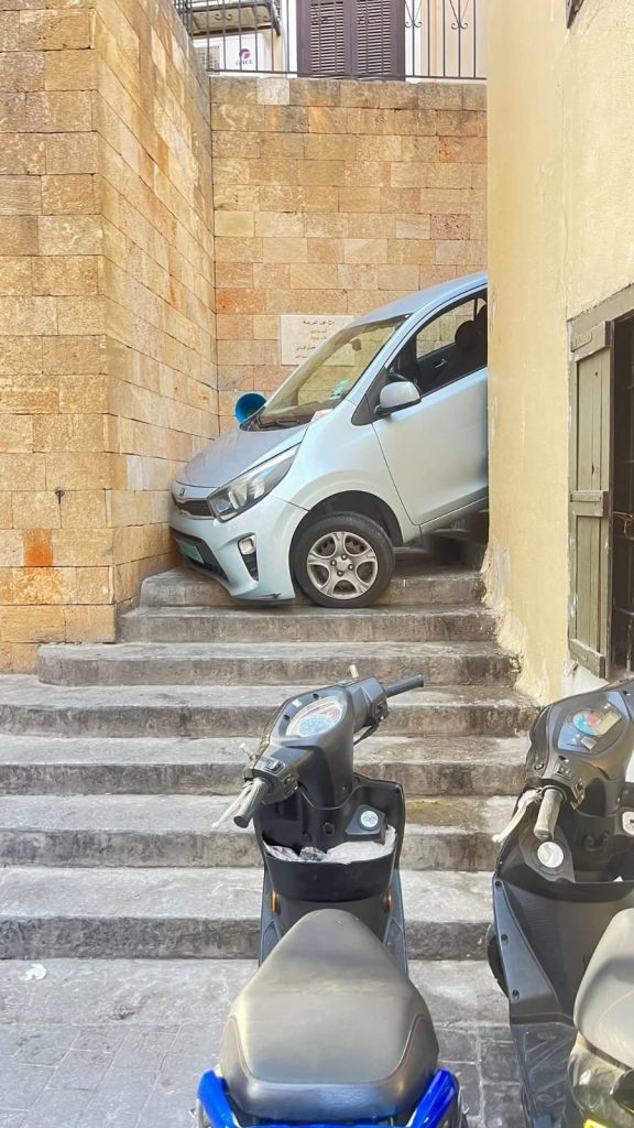 علق شاب وسط الدرج في منطقة عين المريسة، أثناء قيادته سيارته متكلًا على google maps.