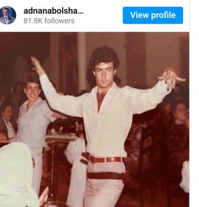 “بما أنه كتير مواقع بهالفترة عم تتشرلي هي الصورة يلي عم أرقص فيها وهرّج شوي بعرس أخي بمدينة حمص من شي ٤٠ سنة، وبما أنه أكثرية المعلقين عم يستنكروا ويستغربوا ويستهزؤوا، وكأني مرتكب فعل مشين وغير مألوف – طبعاً بمقاييس اليوم الأخلاقية- يلي ما كانت هيك أبداً بهديك الأيام!