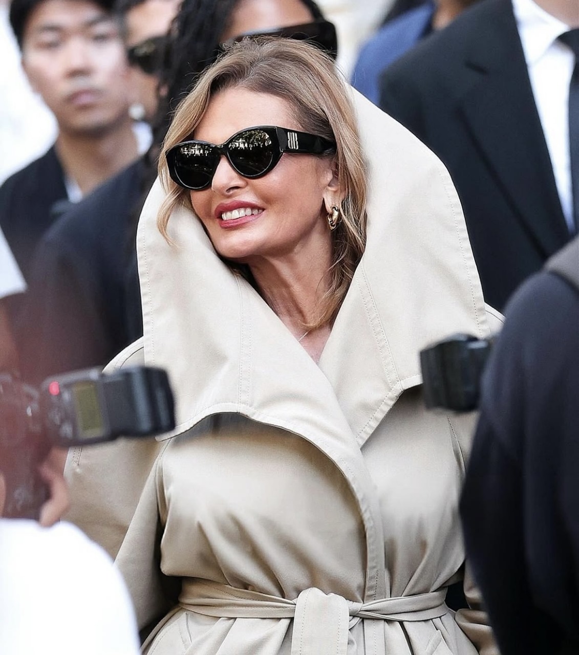 يسرا التي ظهرت مرتدية ترنش طويل. جمعتها لحظات عفوية مع النجمة سلمى حايك التي تعتبر من اهم سفراء العلامة المثيرة للجدل بتصميماتها الخارجة عن المألوف.ويبدو ان اهتمام الأيقونة المصرية يسرا بمجال الأزياء قد تضاعف في السنوات الأخيرة لها حيث تفرغت لمتابعة وحضور اهم فعاليات الموضة حول العالم،