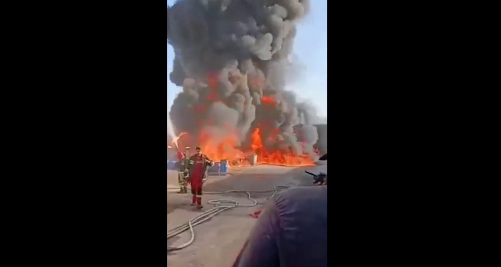 بالفيديو: حريق في معمل للمنتجات النفطية
