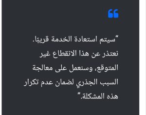 وبحسب تقارير تقنية، وصل مستوى الاتصال عبر الشبكة إلى 16% فقط من المعدل الطبيعي، وسط استياء واسع من المستخدمين الذين لم يتلقوا أي إنذار مسبق من الشركة.