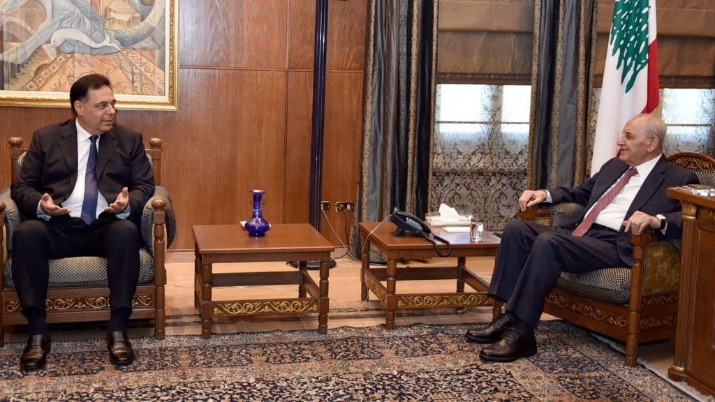 استقبل رئيس مجلس النواب نبيه بري في عين التينة، رئيس الحكومة السابق حسان دياب، حيث تم البحث في تطورات الاوضاع والمستجدات السياسية.