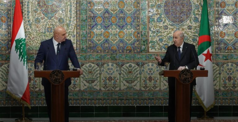 أكّد رئيس الجمهورية العماد جوزاف عون أنّ “مجالات التعاون بين لبنان والجزائر كثيرة ومهمة جداً في مجالاتِ الطاقة وقطاعاتِ الاقتصادِ كافة من زراعة وتجارة وتربية وتعليمٍ وثقافةٍ وصحةٍ وسياحة وتكنولوجيا وغيرِها، وخصوصاً في القضية المُلحة اليومَ في لبنان، ألا وهي مساعدتُنا على إعادةِ إعمارِ ما خلّفته الاعتداءاتُ والحروبُ الأخيرة على مستوى المنشآتِ الحكومية، والبنى التحتية، وبيوتِ الذين دُمرت منازلُهم. ولا نريدُ للوقتِ الضائع، ولا للخياراتِ الخاطئة، أن تدمرَ آمالَهم في العودة إلى أرضِهم، والبقاءِ فيها كِراماً أعزاء”.