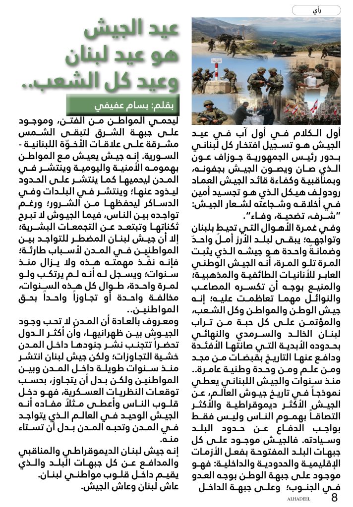 إنه جيش لبنان الديموقراطي والمناقبي والمدافع عن كل جبهات البلد والذي يقيم داخل قلوب مواطني لبنان.