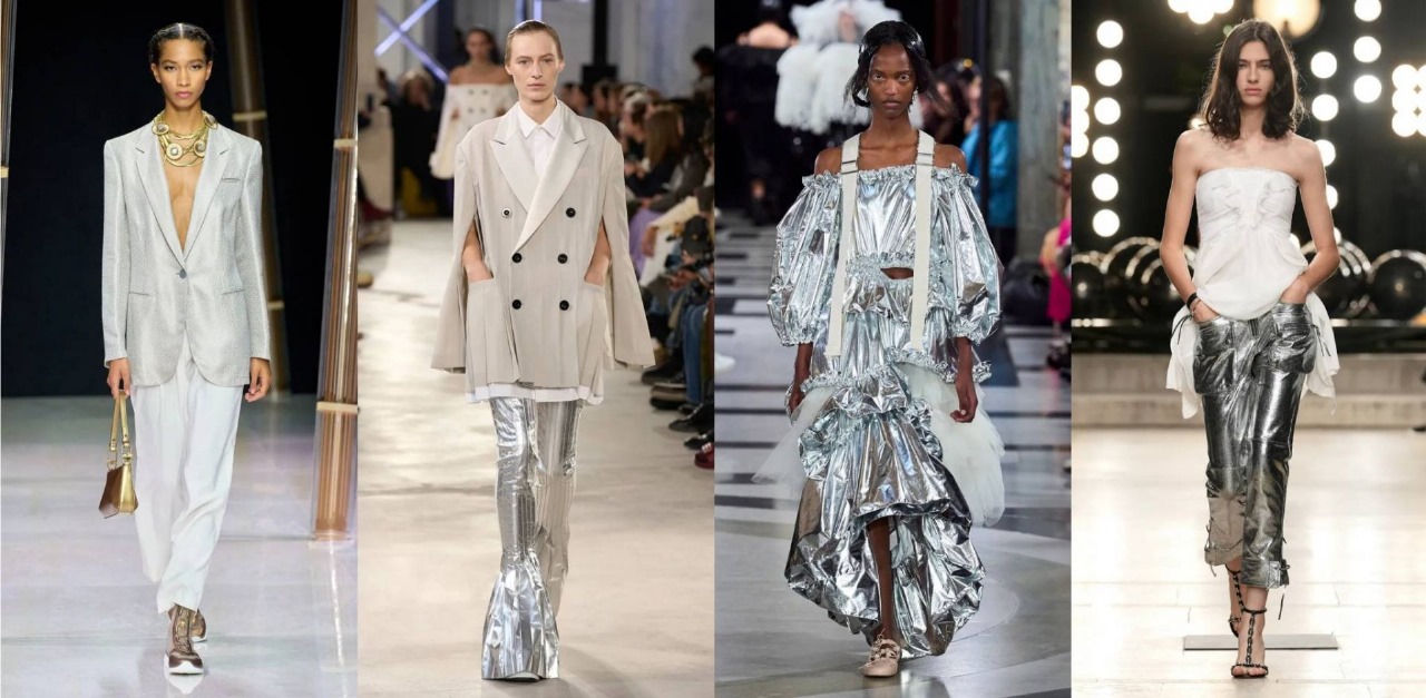 برزت التصاميم الفضّية بشكل لافت على منصات عروض الأزياء لصيف 2025، لتعلن عن توجهٍ جريء ومضيء يُعيد تعريف مفهوم اللمعان في الإطلالة اليومية. لم تعُد الأزياء الفضية حكراً على السهرات والمناسبات الخاصة، بل شقّت طريقها إلى الأزياء الجاهزة (Ready-to-Wear) بتصاميم عصرية تناسب النهار كما الليل.من “أسبوع الموضة” في باريس إلى نيويورك وميلانو، لاحظنا حضوراً قوياً للقطع الفضية في تشكيلات كبار المصمّمين مثل Balmain، Paco Rabanne، وAlexander McQueen، الذين قدّموا سترات، تنانير، وحتى ملابس كاجوال بأقمشة معدنية لامعة بدرجات الفضّة المتنوعة، من الرمادي المعدني الهادئ إلى الفضّي اللامع اللامتناهي.تشير موضة التصاميم الفضية إلى مزاجٍ مستقبلي جريء يعكس الرغبة في التميّز والخروج عن المألوف. إنها عودة قوية للـ “glam” بأسلوب أكثر تحرراً وعفوية. كما تعكس حالة من التفاؤل والإشراق، ربما كردّ فعل على سنوات من الأزياء الهادئة والبسيطة التي فرضتها الأزمات العالمية