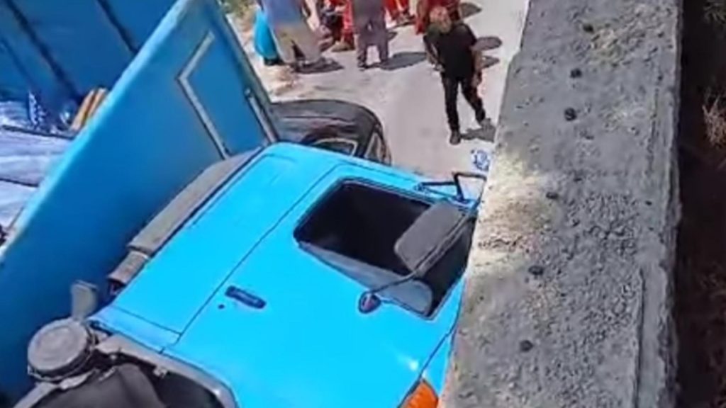 وقع حادث سير مروّع على طريق رأس نحاش البترونية، إثر انزلاق شاحنة تابعة لإحدى شركات بيع المياه وانقلابها ما أدى إلى سقوطها فوق سيارة كانت تمر في المكان.
