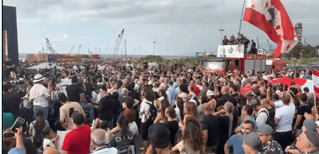 وعند تمام السادسة مساءً أطلقت السفن صافراتها وارتفعت الرافعات في مرفأ بيروت إجلالاً لأرواح الشهداء.