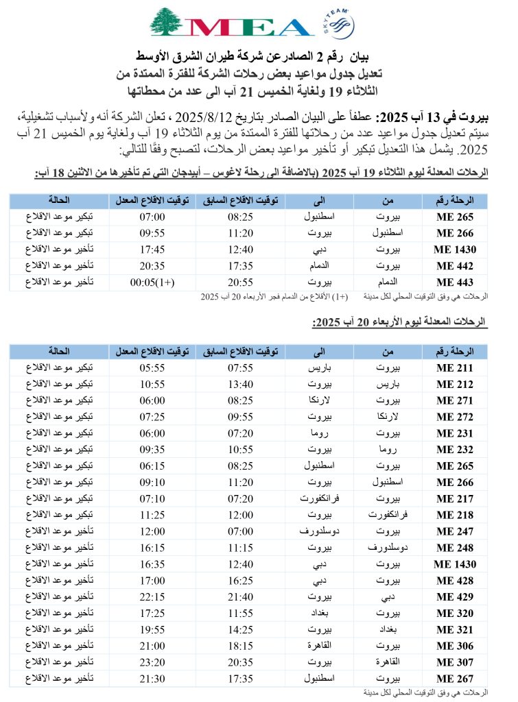 بيان 2 صادر عن طيران الشرق الاوسط 13 آب 2025 yasmin ahmad 4 أشهر ago بيان 2 صادر عن طيران الشرق الاوسط 13 آب 2025