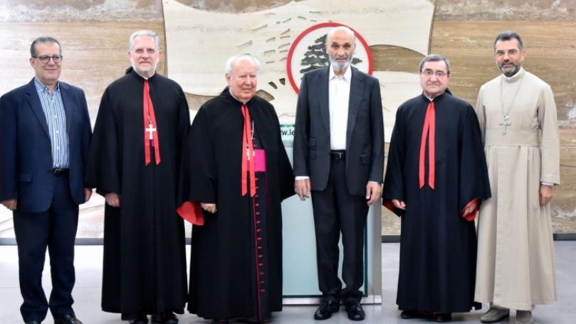استقبل رئيس حزب “القوات اللبنانية” سمير جعجع، في معراب، وفداً من اللجنة الأسقفية المارونية للشأن الوطني، ضمّ المطارنة بولس مطر، ميشال عون، منير خيرالله وأنطوان بو نجم، بحضور رئيس مكتب التواصل مع المرجعيات الدينية في الحزب أنطوان مراد.