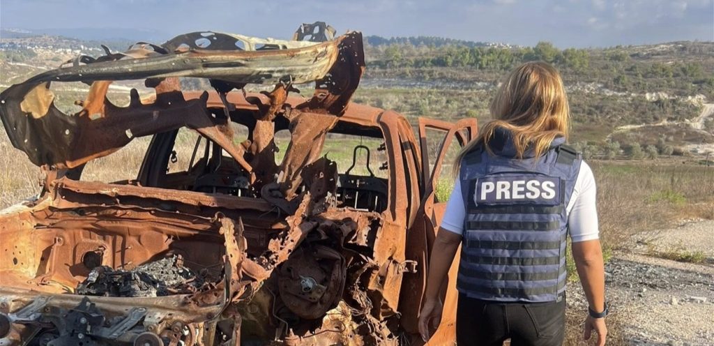 نشرت الإعلامية اللبنانية في قناة “الجزيرة” كارمن جوخدار، صوراً لها من بلدة علما الشعب، وتحديداً في المكان الذي تعرضت فيه لاستهداف إسرائيليّ مع زملاء آخرين لها في تشرين الأول 2023، وذلك مع بدء التصعيد العسكري بين “حزب الله” وإسرائيل