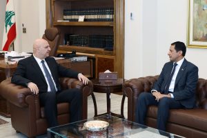 وفي إطار اللقاءات الإعلامية، استقبل الرئيس عون وفد مكتب قناة “الميادين” في بيروت برئاسة الدكتور روني الفا. وتناول اللقاء الأوضاع العامة في لبنان والمنطقة، ومواقف عون من المستجدات، خاصة الاتصالات الجارية لوقف الأعمال العدائية الإسرائيلية، وتطبيق القرار الدولي 1701، بالإضافة إلى معالجة مسألة حصرية السلاح بيد المؤسسات الأمنية اللبنانية.