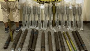 وبتفتيشه والسيارة، عُثر على 12 قاذف آر. بي. جي مع 12 مقذوفًا عائدة لها.