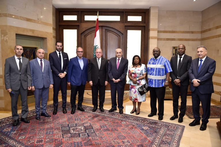 استقبل رئيس مجلس النواب نبيه بري في مقر الرئاسة الثانية في عين التينة مستشارة رئيس جمهورية الغابون بريس أوليغي نغيما للشؤون القضائية القاضية جوستين أوغونجو أوماندا إيب ريتينو والوفد المرافق بحضور عضو كتلة التنمية والتحرير النيابية النائب ناصر جابر ورئيس الجامعة اللبنانية الثقافية في العالم عباس فواز ومسؤول مكتب العلاقات الخارجية في حركة أمل علي حايك وعدد من أركان الجالية اللبنانية في الغابون