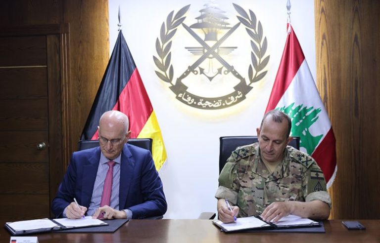 شاركها فيسبوك تويتر لينكدإن تيلقرام واتساب استقبل قائد الجيش العماد رودولف هيكل في مكتبه في اليرزة، السفير الألماني في لبنان Kurt Stoeckl-Stillfried وتناول البحث الأوضاع العامة في لبنان والمنطقة. كما وقع السفير Stillfried والعماد هيكل ترتيبات عمل ضمن برنامج السلطات الألمانية لدعم الجيش