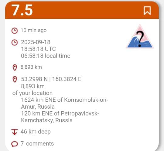 زلزال عنيف بقوة 7،5 يضرب روسيا