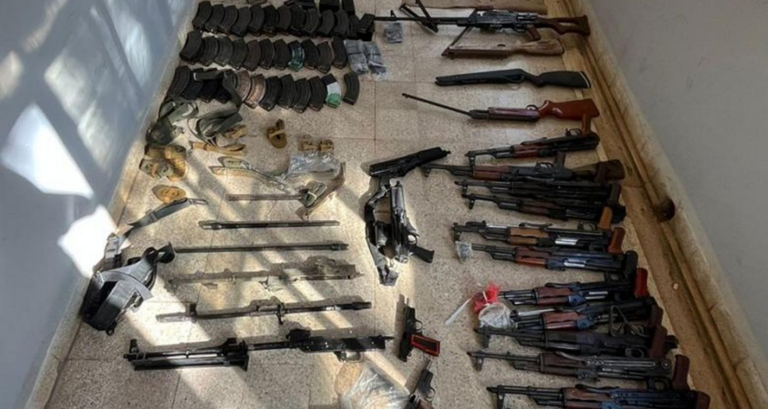 “بتاريخ 21 / 9 / 2025 وبعد توافر معلومات حول عصابة تعمل بالاتجار بالأسلحة، دهمت وحدة من الجيش تؤازرها دورية من مديرية المخابرات في منطقة مجدل عنجر – زحلة منازل المواطنين: (ا.ع.)، (ن.ج.)، (م.ي.)، (ر.خ.) وأوقفتهم، وصادرت كمية كبيرة من الأسلحة الخفيفة والمتوسطة والذخائر الحربية بالإضافة إلى أعتدة عسكرية.