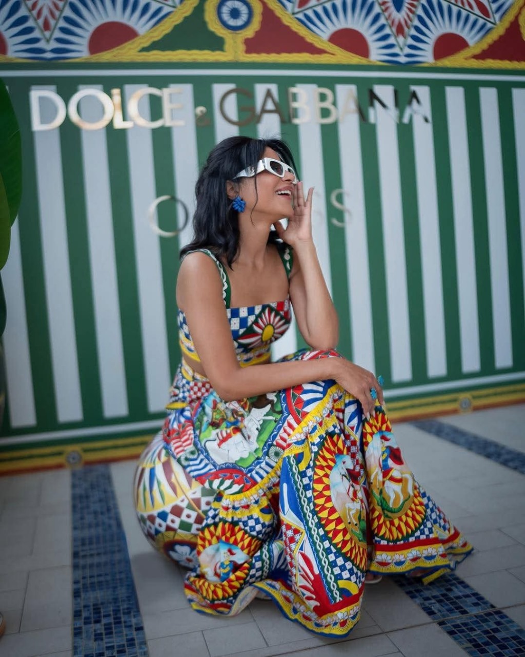 تألقت الإعلامية الإماراتية مهيرة عبد العزيز بإطلالة صيفية مبهجة حملت توقيع دار الأزياء الإيطالية الشهيرة Dolce & Gabbana، حيث شاركت جمهورها عبر حسابها الرسمي على موقع “إنستجرام” صورا جديدة ظهرت فيها بإطلالة نابضة بالألوان والحيوية