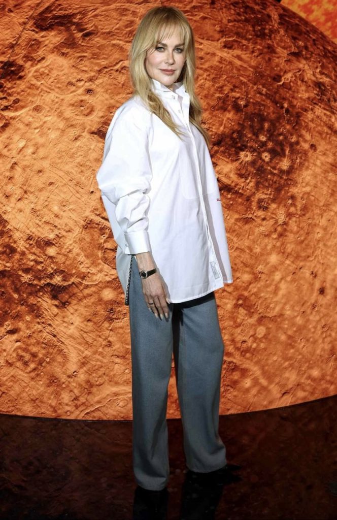وقد اختارت نيكول كيدمان الظهور مجدداً في قلب العاصمة الفرنسية خلال عرض شانيل الافتتاحي الذي قدّمه المصمم ماتيو بلازي Matthieu Blazy لموسم ربيع/صيف 2026، ضمن فعاليات أسبوع باريس للموضة. حضورها لم يكن مجرد ظهور عابر، بل لحظة رمزية تعلن بداية فصل جديد يجمع بين السينما والموضة في أبهى صورها.تألقت كيدمان بإطلالة عكست توقيع شانيل الأيقوني، حيث جمعت بين الرقي الهادئ والكلاسيكية العصرية التي تميّز أسلوبها. اختارت إطلالة كلاسيكية بتصميم بسيط حيث قميص ابيض كلاسيكي وبنطلون رمادي بقصة مستقيمة أضفت عليها لمسة من الأنوثة الراقية التي تعبّر عن هوية الدار. وبحضورها المشرق وأناقتها اللافتة، جسّدت النجمة الأسترالية روح شانيل التي تمزج بين الفخامة والتجديد