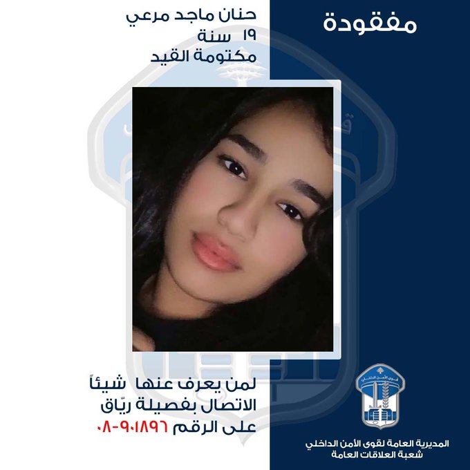 تُعمِّم المديريّة العامّة لقوى الأمن الدّاخلي، بناءً على إشارة القضاء المختص، صورة المفقودة: