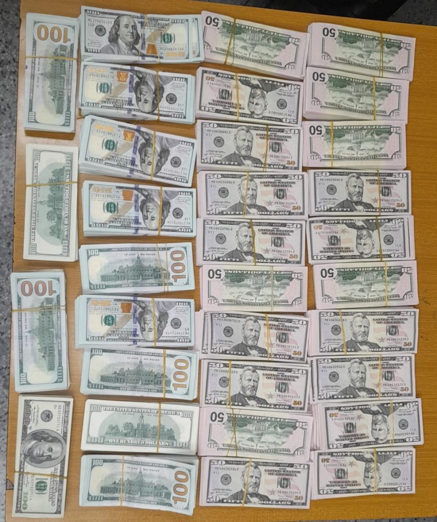بتاريخ 06-11-2025، تمكّنت فصيلة تفتيشات المطار بقيادة العميد عزت الخطيب وأمر فصيلة التفتيشات العقيد علي حاموش في وحدة جهاز أمن السّفارات والإدارات والمؤسّسات العامّة من إحباط عمليّة تهريب مبلغ ماليّ عبارة عن /207،100/ دولار امريكي مزيّف، مقسّم /18/ رزمة من فئة الـ /50/، و/117،100/ من فئة الـ /100/ دولار امريكي، ومبلغ /20،000/ دولار أميركيّ مزيّف أيضًا، ومقسّم /3/ رزم: /2/ من فئة الـ /50/ دولارًا، وواحدة من فئة الـ /100/ دولار، تمّ إخفاؤها بطريقة احترافيّة، تحت ملابس كلّ من: