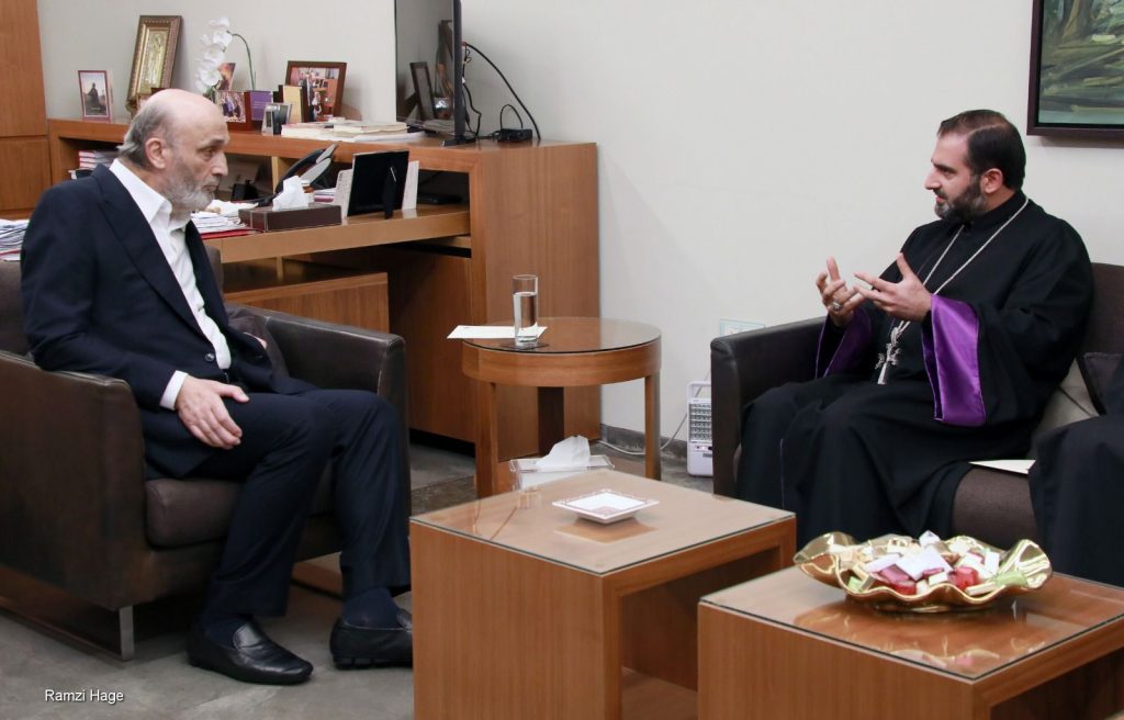 التقى رئيس حزب القوات اللبنانية سمير جعجع في المقر العام في معراب المونسنيور ماشدوتس زختريان النائب البطريركي لجمعية كهنة بزمار البطريركية ورئيس دير سيدة بزمّار، يرافقه الأب ديكران فيلبوس الوكيل العام للدير، وعضوا لجنة احتفالية القديس اغناطيوس مالويان، كارو مرعشليان وآرام قره دغليان مدير ثانوية الصليب الأقدس هاربويان – الزلقا، في حضور الوزير السابق ريشار قيومجيان، ورئيس مكتب التواصل مع المرجعيات الروحية في الحزب أنطوان مراد.