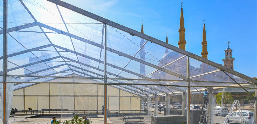 نشر المُصور الزميل نبيل اسماعيل صوراً توثق تشييد خيمة في ساحة الشهداء – وسط بيروت، حيث سيلتقي قداسة البابا لاوون الرابع عشر مع رؤساء الطوائف الإسلامية والمسيحية.