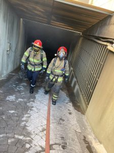 وقد عمل العناصر على تطويق الحريق والسيطرة عليه بسرعة، ومنع امتداده إلى الطوابق العليا والسيارات الأخرى داخل الموقف، فيما تسرّب الدخان بكثافة إلى الشقق داخل المبنى، الأمر الذي استدعى إخلاء السكان وإنقاذ عدد منهم بواسطة السلالم، وإسعافهم ميدانيًا جرّاء تعرضهم لضيق نفس نتيجة تنشّق الدخان، وذلك بمساعدة جهات أخرى حضرت إلى المكان.