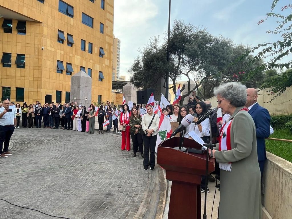 بداية رفعت الوزيرة العلم اللبناني على السارية أمام الوزارة على أنغام التعظيم التي عزفتها فرقة كشاف ومرشدات التربية، ثم كانت كلمة لمدير الإحتفال المستشار الإعلامي ألبير شمعون إعتبر فيها أن كلمة الوزيرة في هذه المناسبة هي رسالة غنية بالمعاني والأهداف الوطنية والتربوية، وتتم تلاوتها في الوقت عينه في احتفالات مماثلة يقيمها رؤساء المناطق التربوية في المحافظات.