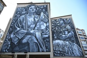 أما الرسّامة باولا دِلفين، فشرحت أن مصدر إلهام الجداريتين هو اللوحة المكسيكية الشهيرة “الفرِيدتان (Las dos Fridas) “للأيقونة فريدا كاهلو. فالجدارية الأولى تُظهر مهاجرة لبنانية تصل إلى المكسيك حاملةً رموز تراثها، من بينها صورة تاريخية تمثّل العائلات المشرقية الأولى التي استقرّت هناك. أما الجدارية الثانية فتصوّر امرأة مكسيكية في لبنان، تشارك ثقافة وطنها وغناه الحضاري. وتعكس الشخصيتان معًا الوجه الأنثوي للهجرة، تلك التجربة التي شكّلت ولا تزال تشكّل العلاقة الثنائية عبر الثقافة والذاكرة والتبادل الإنساني.