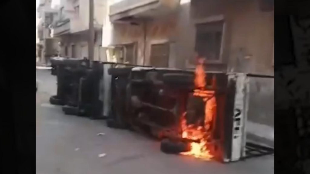 وانتشر على منصات التواصل الاجتماعي مقطع فيديو يظهر فيه حرق آليات وسماع أصوات رصاص كثيف.